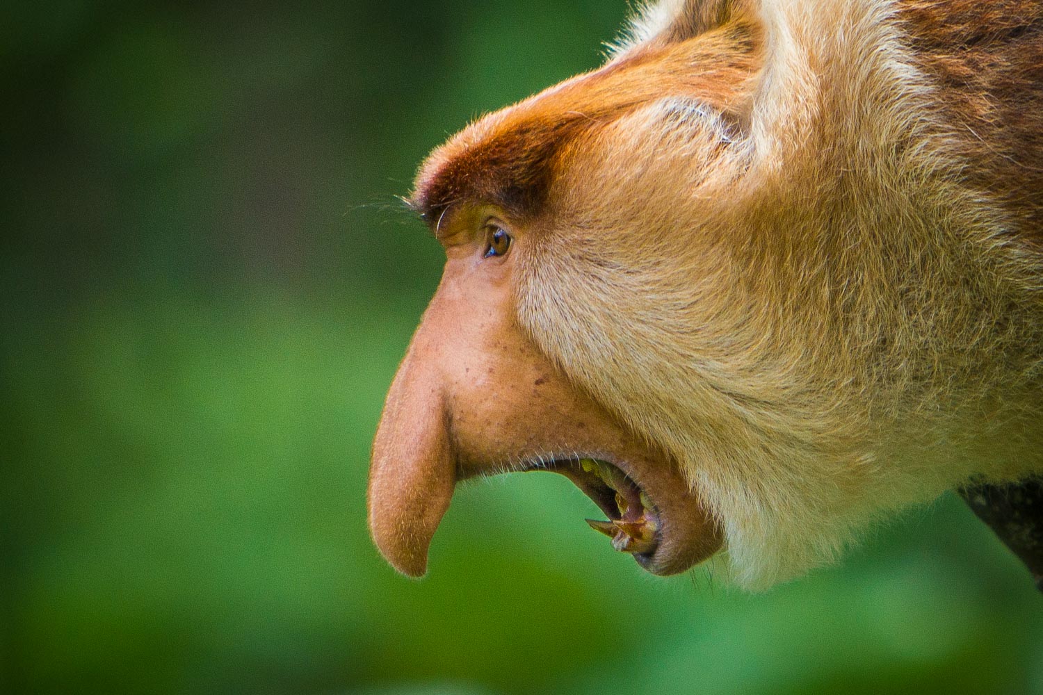 A Proboscis monkey in his naturla habitat feeding on leaves. You won't find these great guys outside of Borneo as they're endemic.
