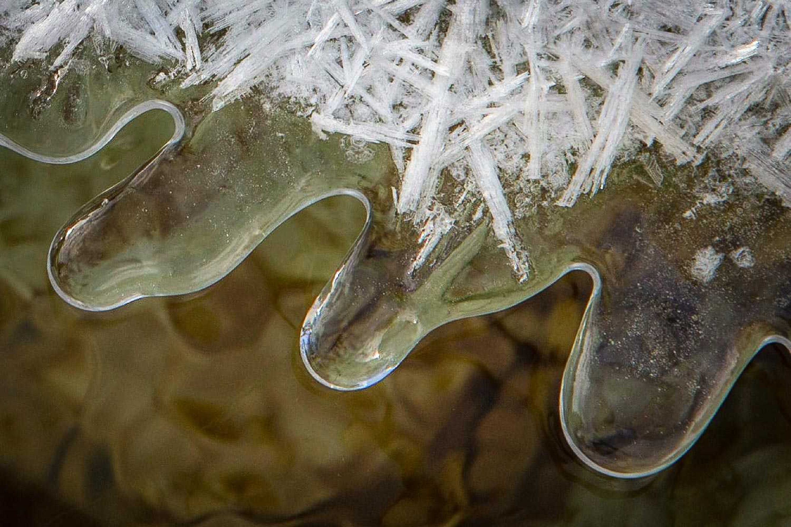 Metre-long frozen waterfalls plunging into the abyss